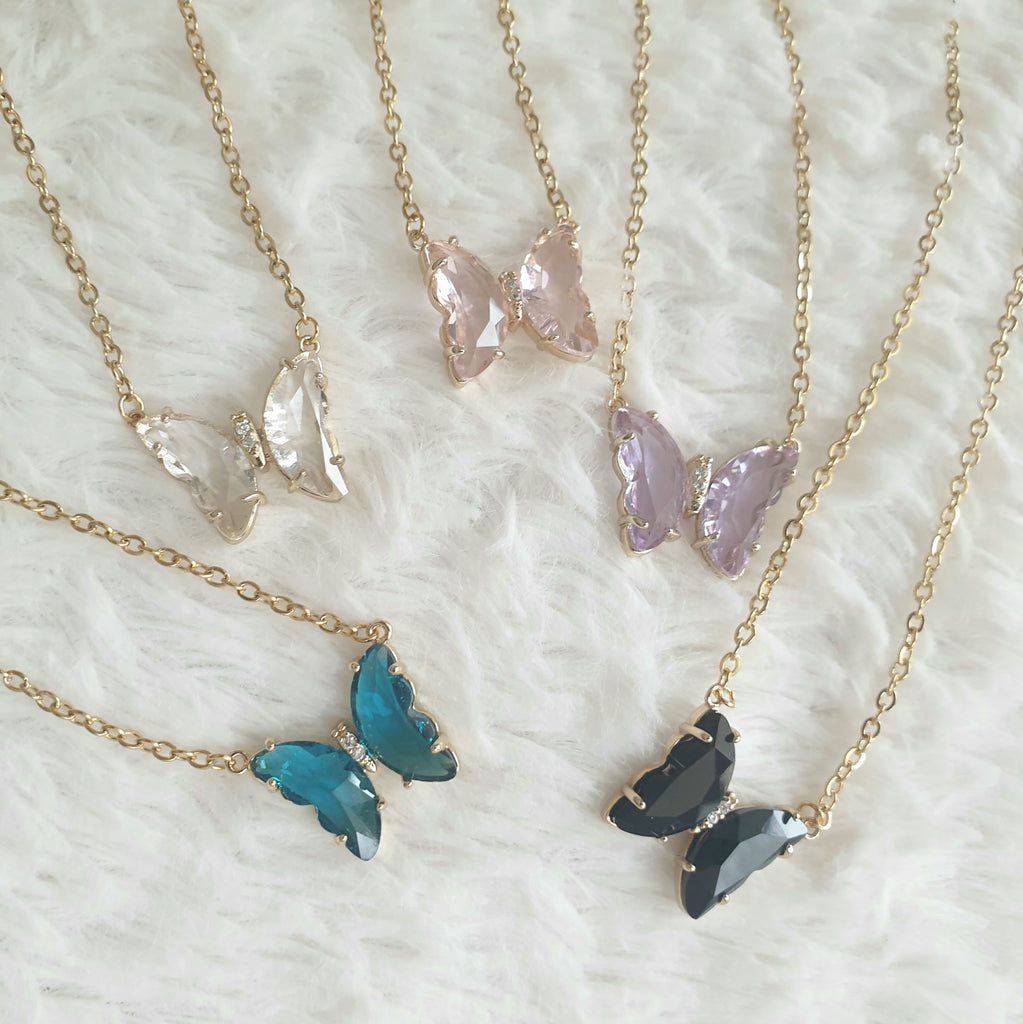 Papillon en cristal - colliers en acier inoxydable de différentes couleurs