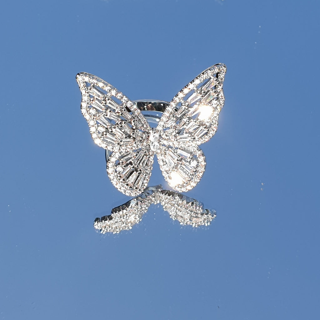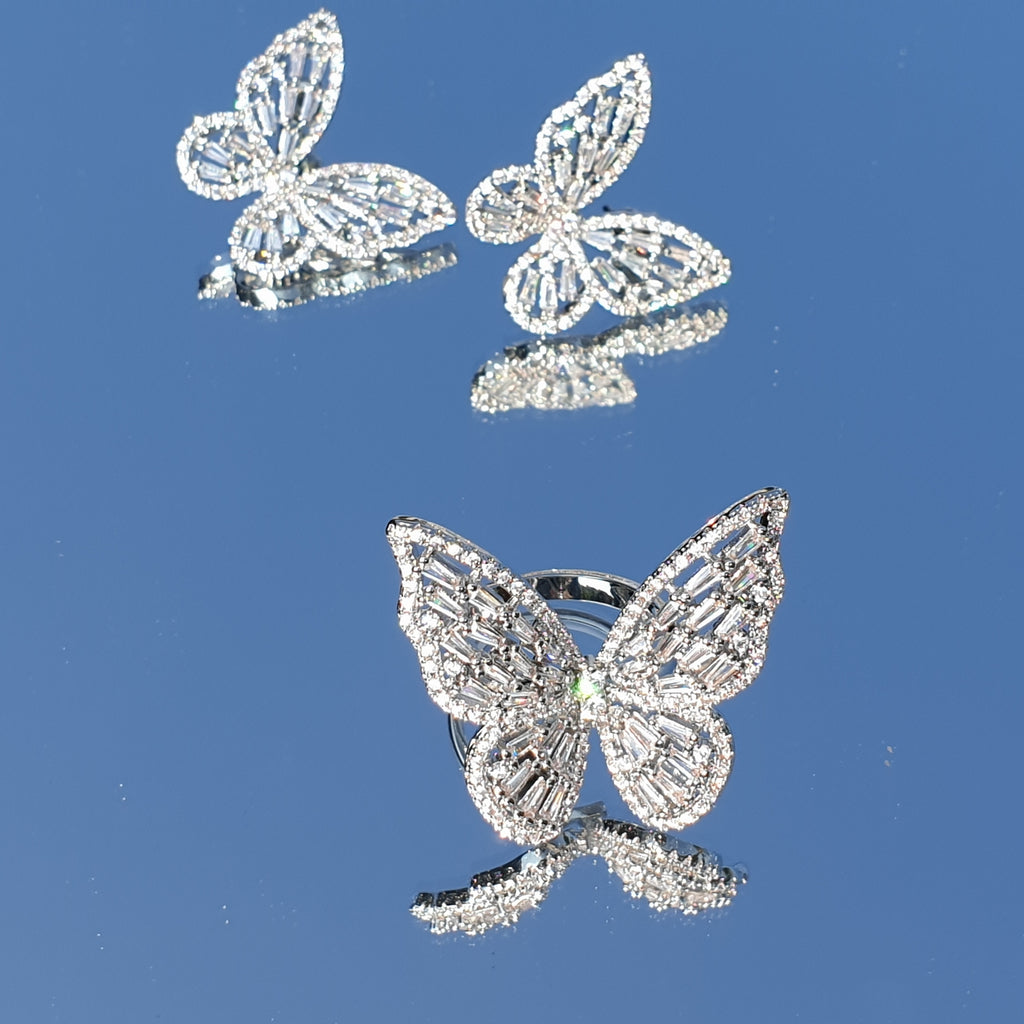 L'ensemble se compose d'une bague et de boucles d'oreilles et est livré dans une boîte à bijoux assortie.