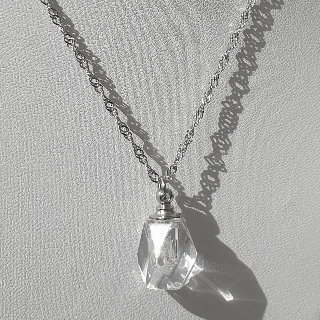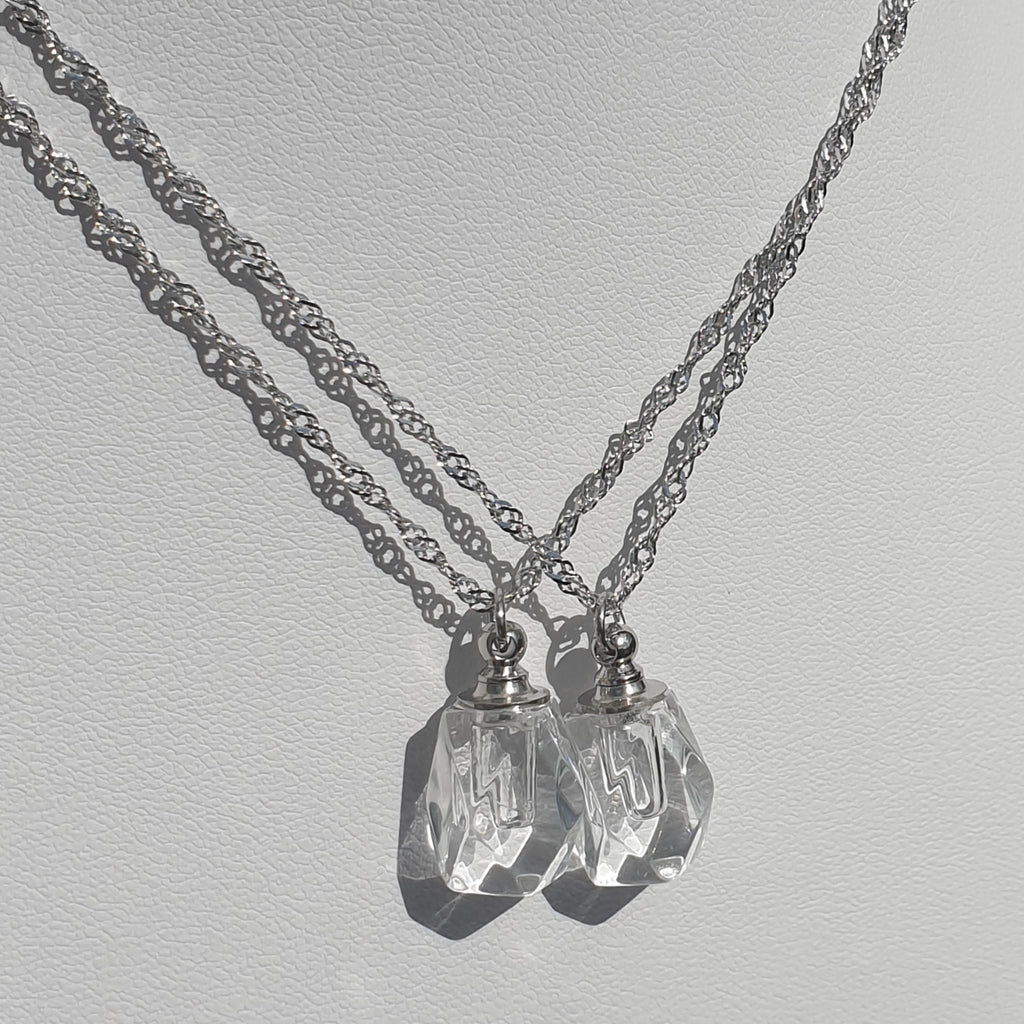 Wunderschöne Fläschchenanhänger in eckige Flaconform mit Edelstahlkette. Fläschchen können befüllt werden mit z. b. Parfüm, ätherische Öle oder anderen Flüssigkeiten.