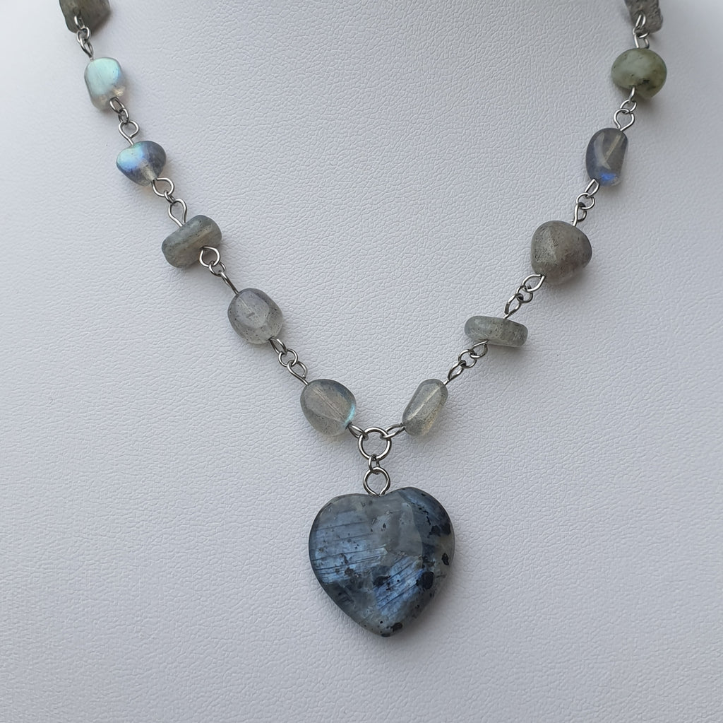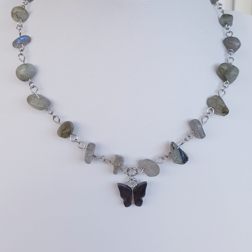 Naturstein Heilstein SPEKTROLITH Gliederkette mit Natursteinen und Edelstahl