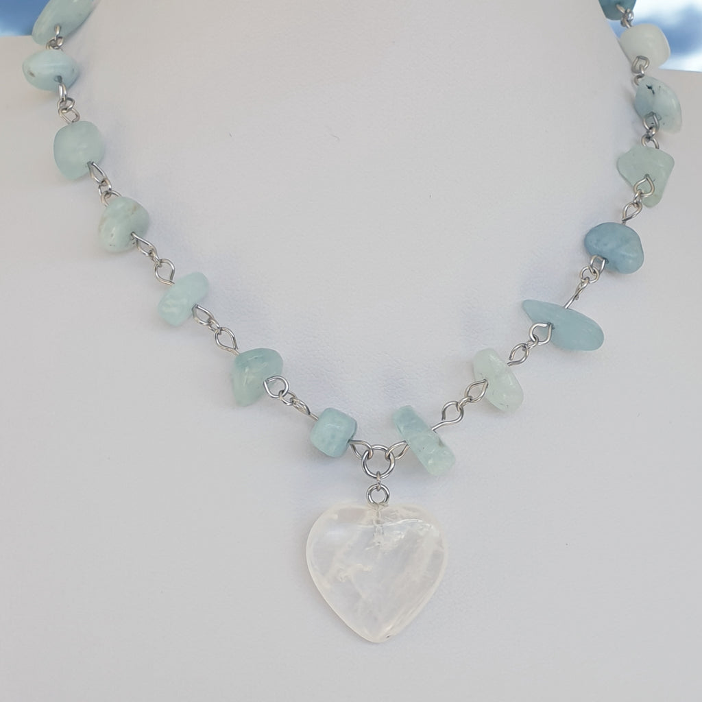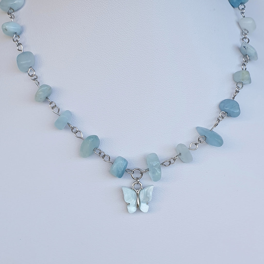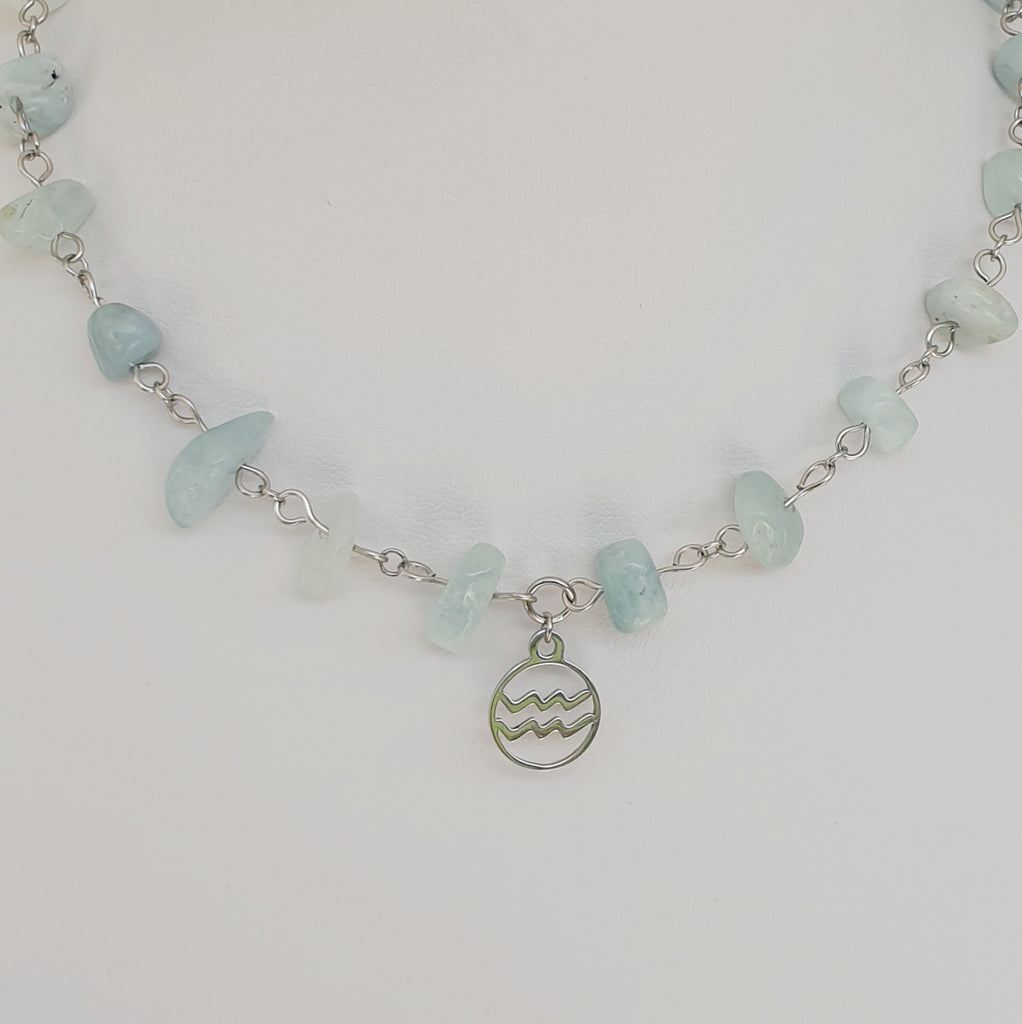 Naturstein Heilstein AQUAMARIN Gliederkette mit Natursteinen und Edelstahl