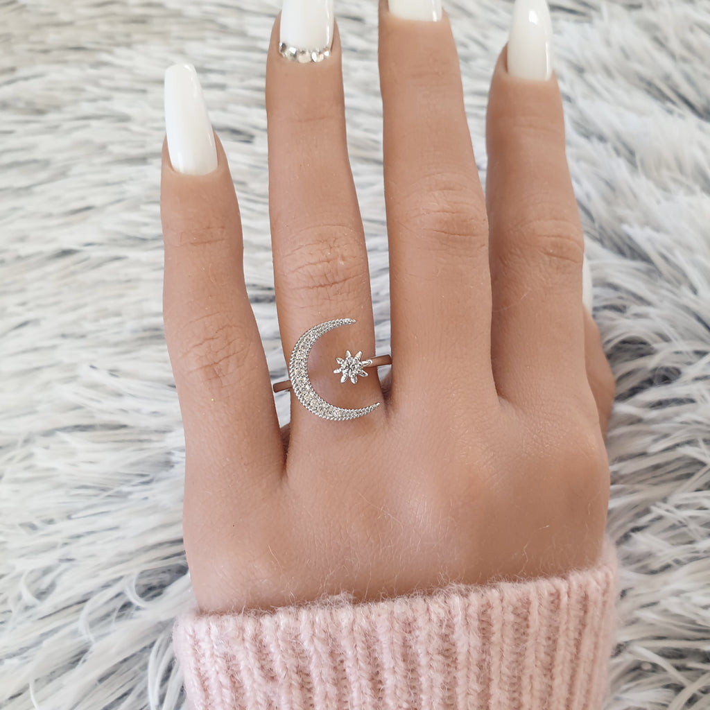 Mond und Stern Ring aus 925er Sterling Silber versilbert. Jede grösse nochmal etwas individuell einstellbar.
