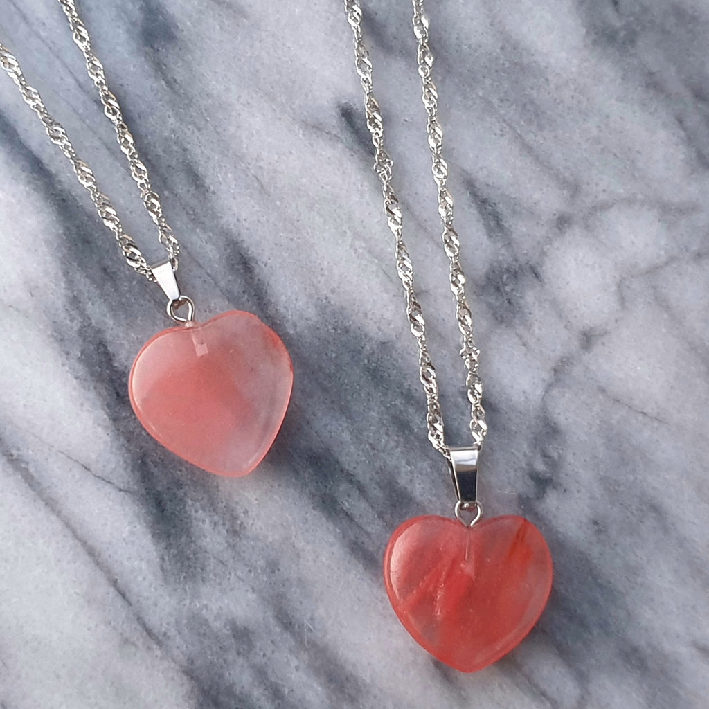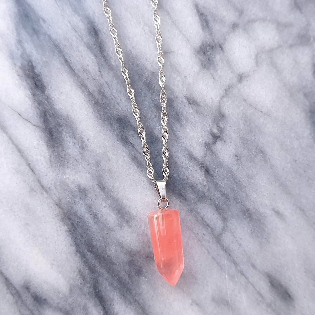 Naturstein Heilstein ERDBEER QUARZ mit EDELSTAHLKETTE