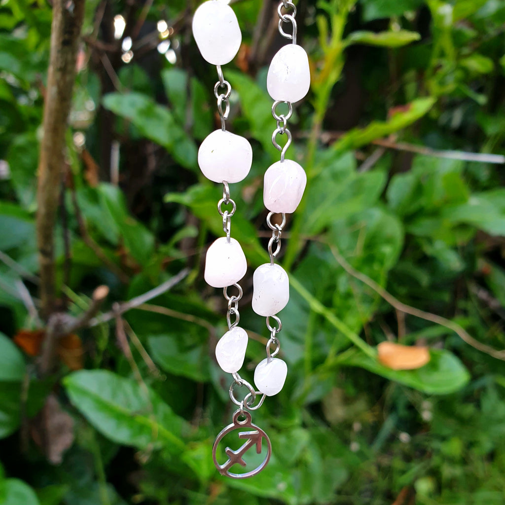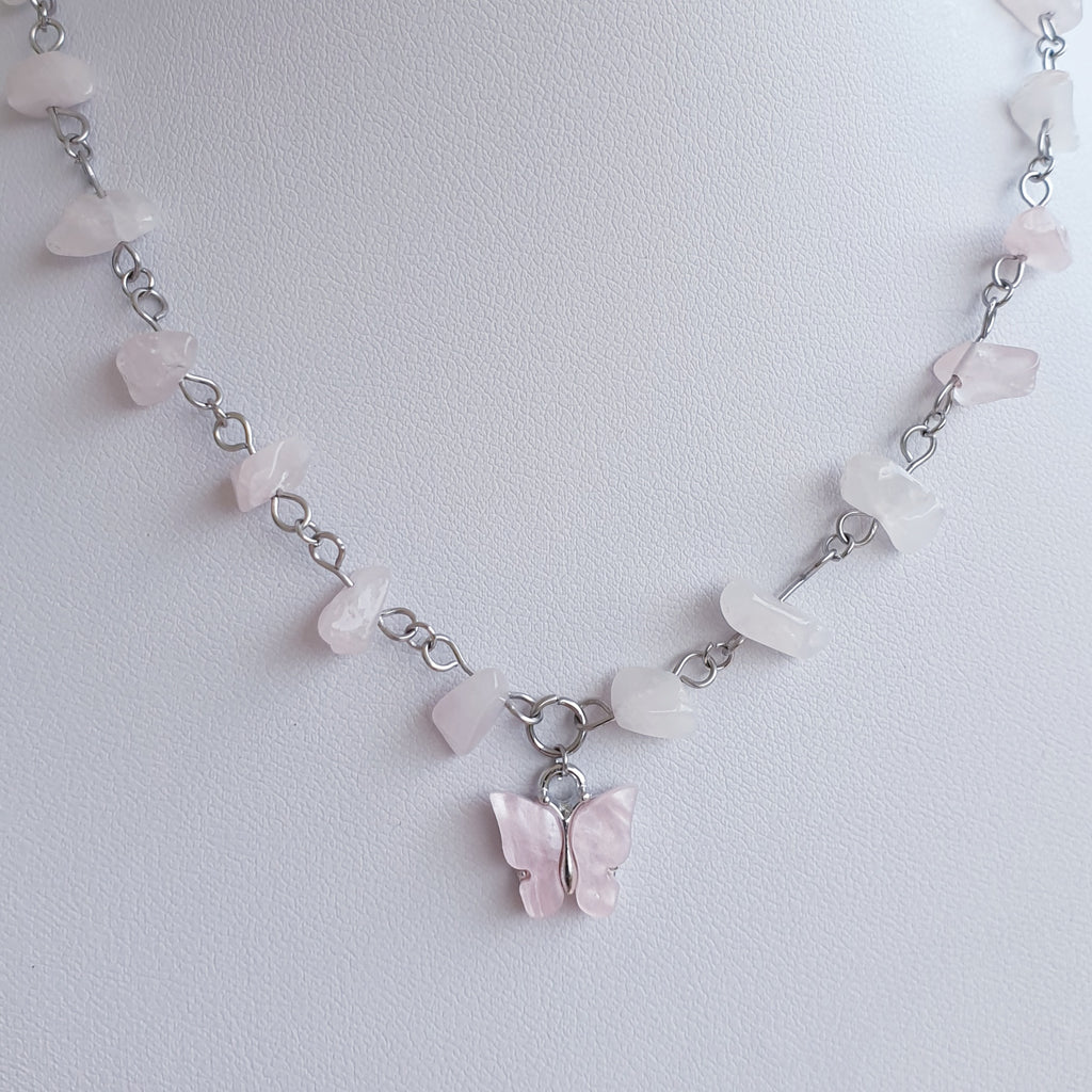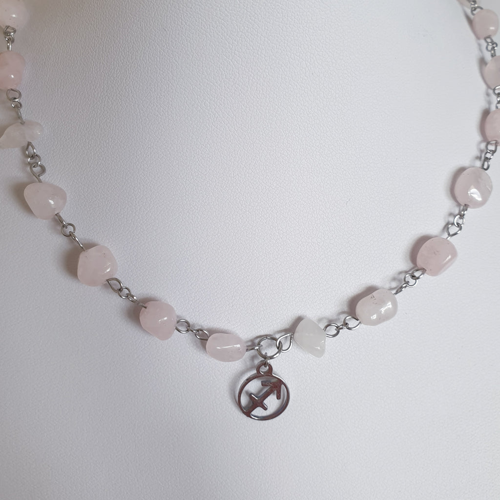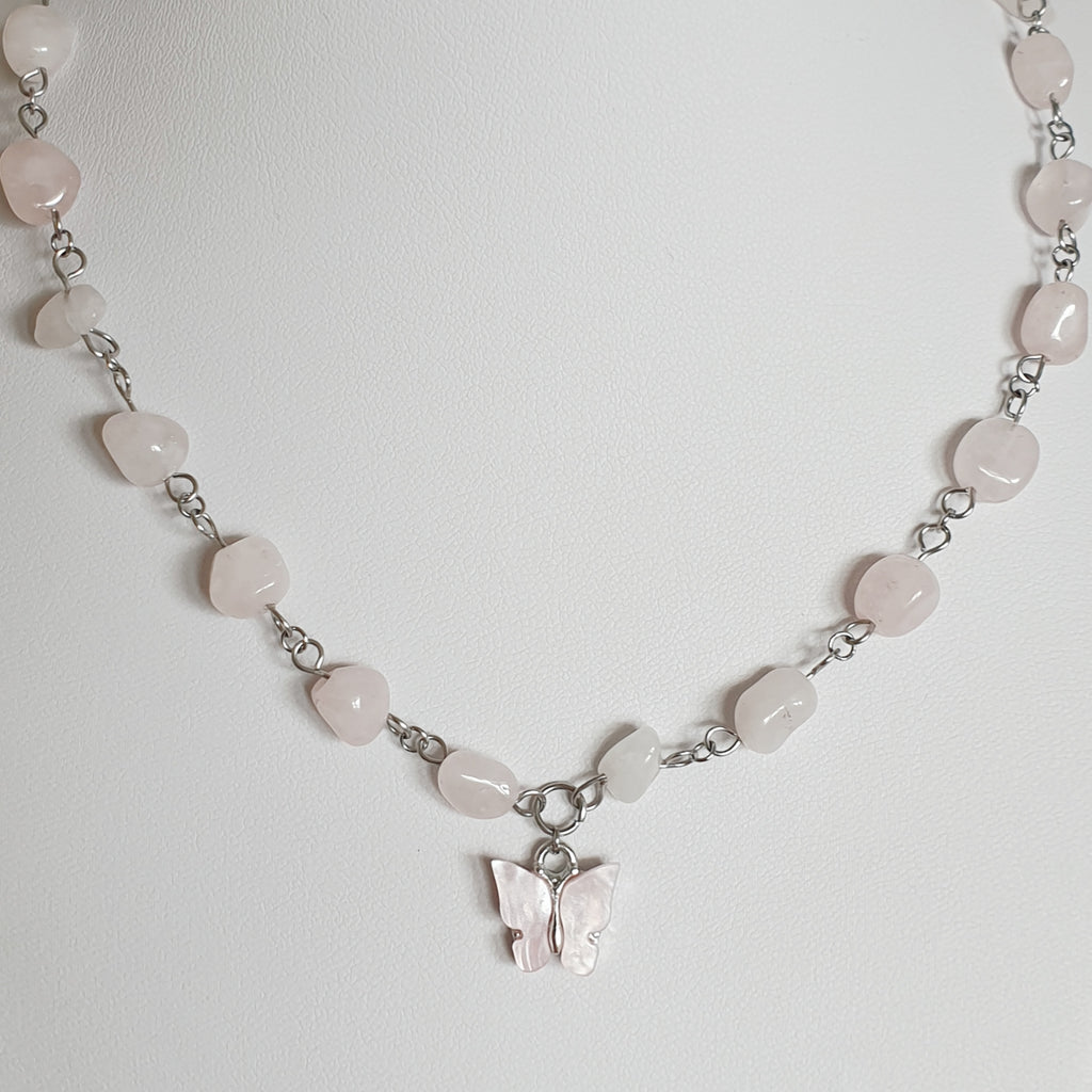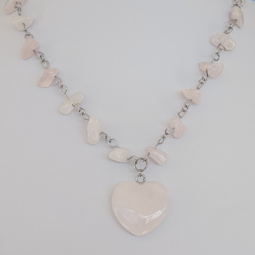 Naturstein Heilstein ROSENQUARZ Gliederkette mit Natursteinen und Edelstahl