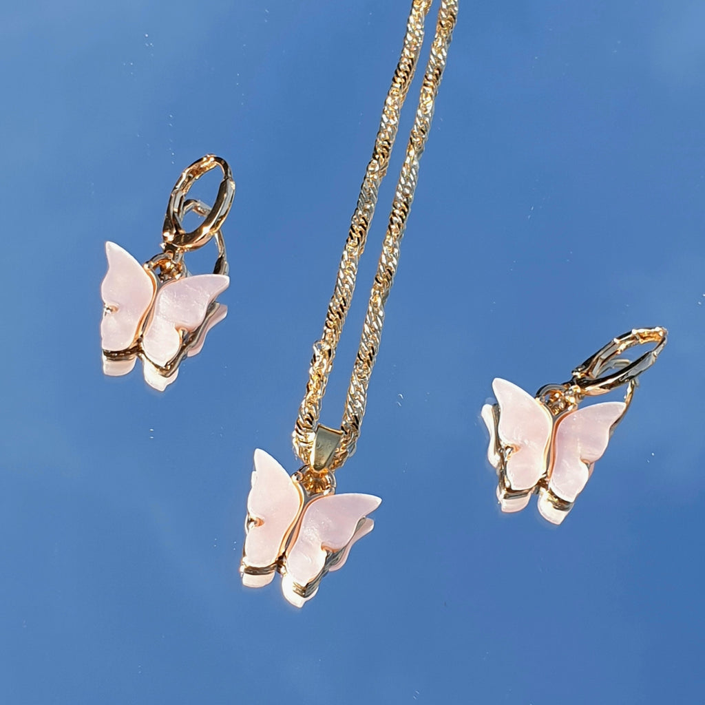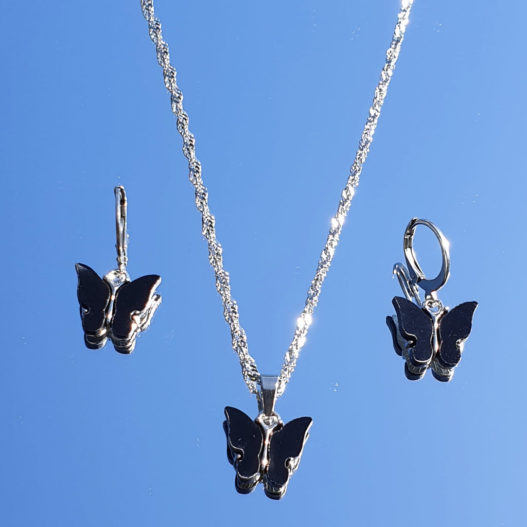 Small mariposa set - halskette aus Edelstahl mit Ohrringen
