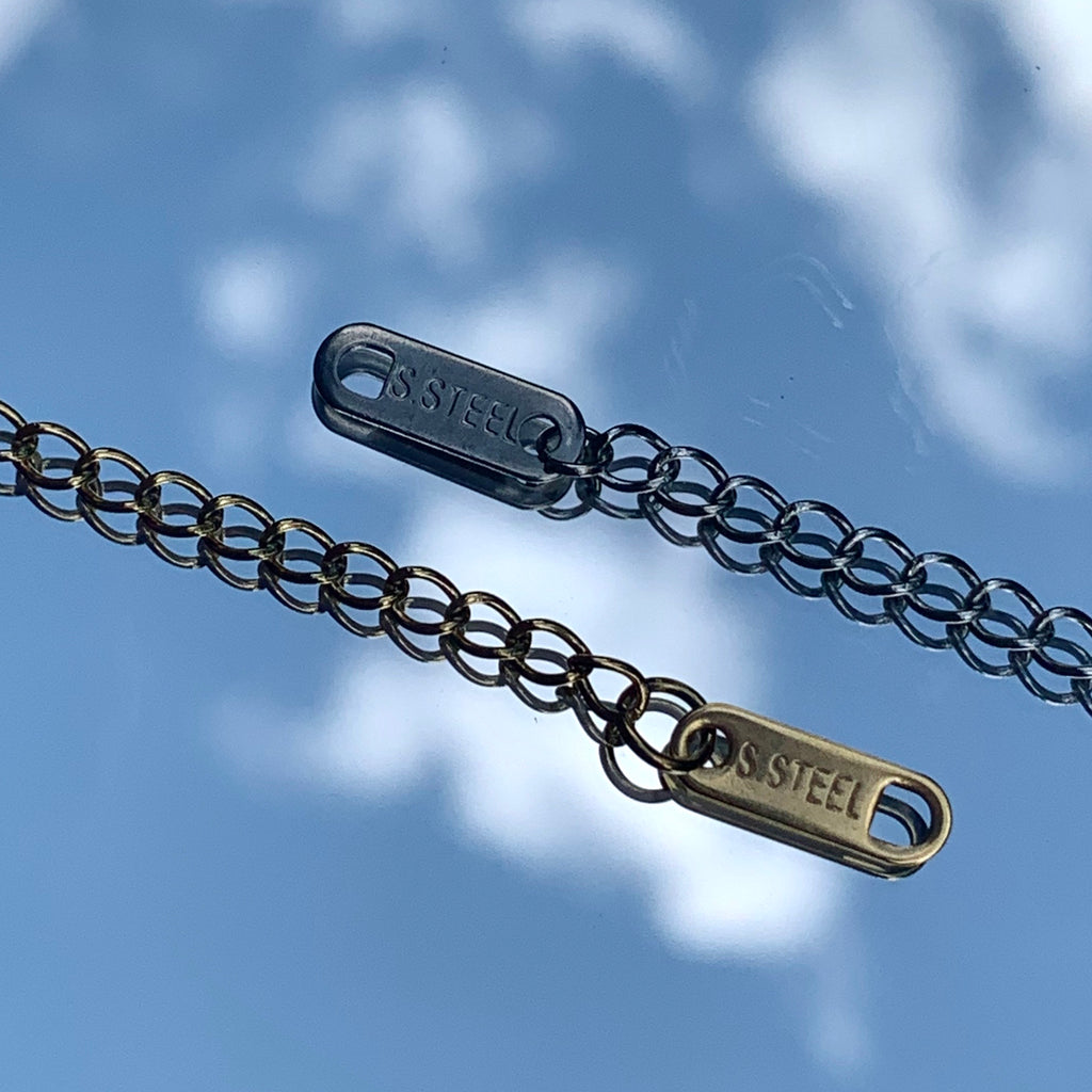 Denna kedja är tillverkad av rostfritt stål, så den missfärgas inte. Den finns i guld eller silver.