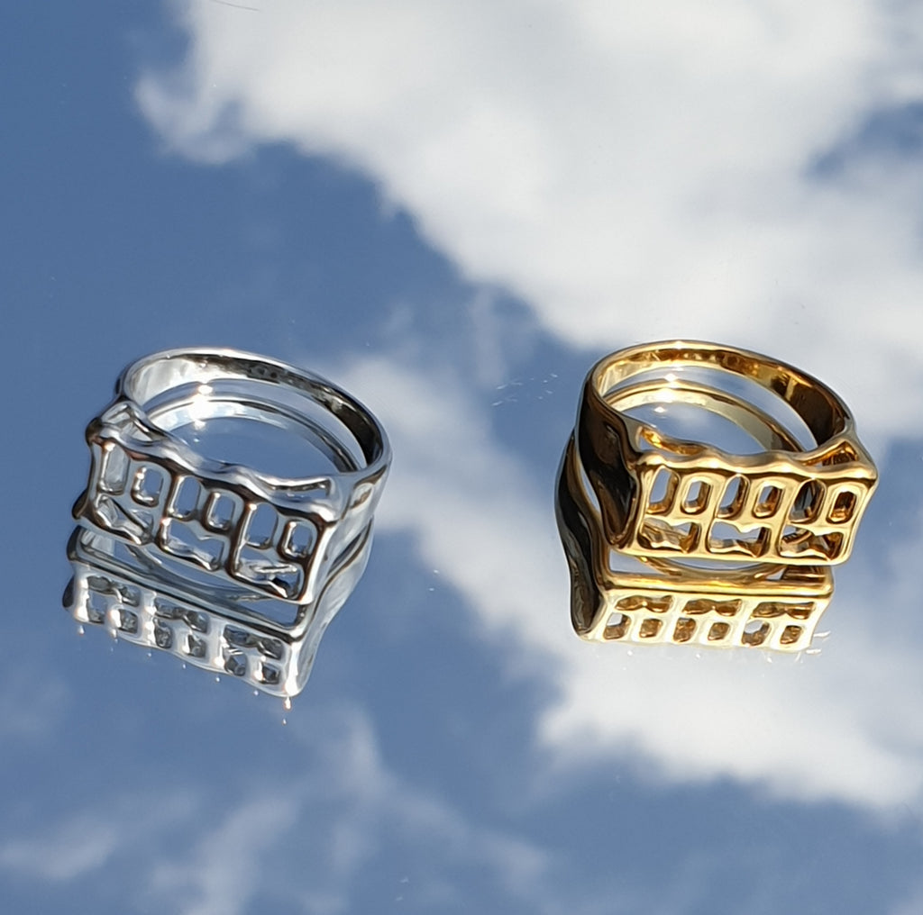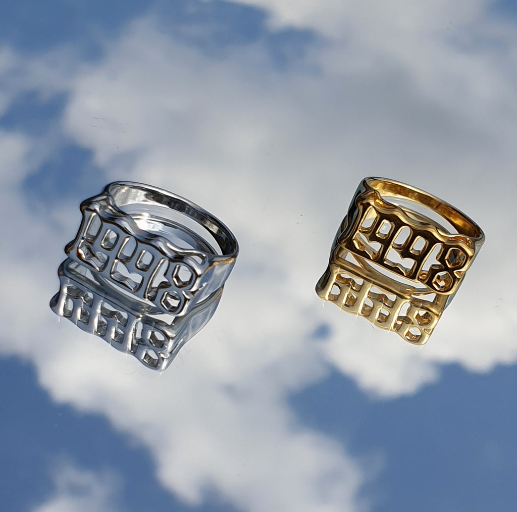 Brett födelseår eller -år i rostfritt stål (så det inte gnider av).